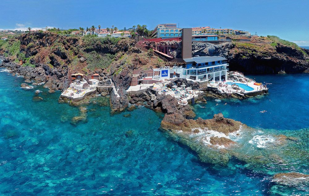 Das Hotel befindet sich an der Südküste Madeiras, 30 Meter über dem Meeresspiegel, und bietet eine wunderschöne Aussicht. Umgeben von einem 14.000 m² großen Garten, verfügt es über eine eigene Badebucht, die sowohl über Treppen als auch einen Lift erreichbar ist. Das Hotel und die Badebucht liegen direkt im Unterwasser-Nationalpark Madeiras, einem einzigartigen Naturparadies.